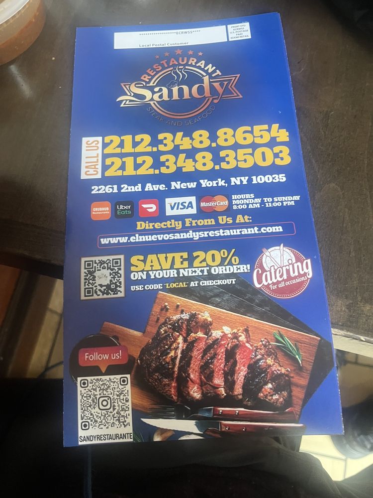 Introducing the menu of Sandy Restaurant, a vibrant Spanish eatery nestled in the heart of Harlem at 2261 2nd Ave, New York. This casual spot is perfect for families, groups, and anyone craving a taste of Spain, whether it's breakfast, lunch, or dinner.